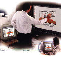 ホワイトボード上の文字や絵、図表をすべて、そのままパソコンに取り込む事ができます。もちろん記録した内容は、プリントアウトしたり、電子メールで他のオフィスや出張先などに送る事が可能。会議やプレゼンテーション、授業などに新しいスタイルのコミュニケーションを提供します。
